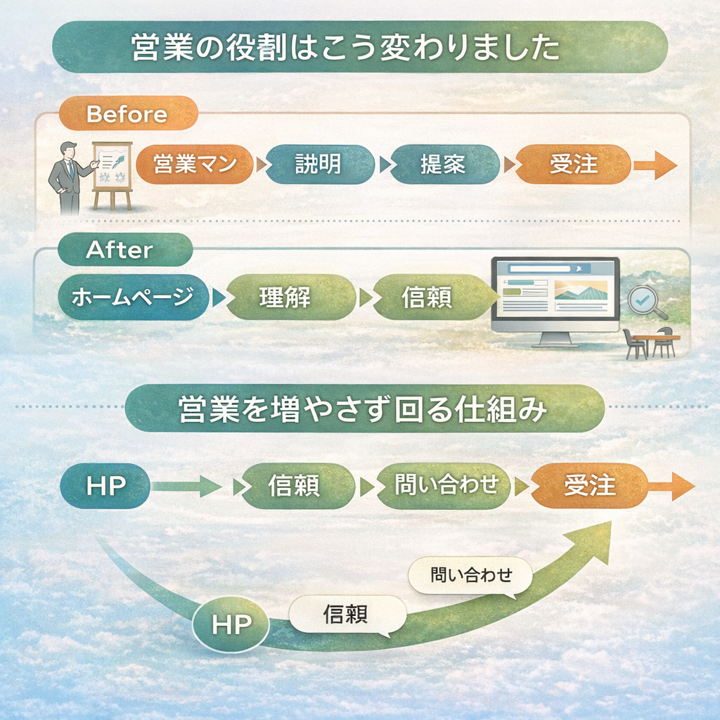 正しく設計すれば、営業・信頼形成・問い合わせを生み出し続ける「経営の中枢」になります。